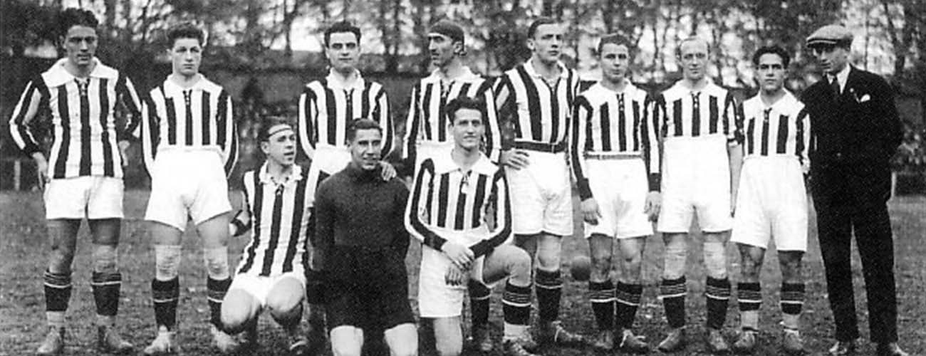 “იუვენტუსის” პირველი პრეზიდენტი ეუჟენიო კანფარი იყო, ხოლო კლუბი “არმის” მოედანზე მდებარე სტადიონზე ბურთაობდა.”იუვეს” თავდაპირველი ფორმა კი ვარდისფერი იყო(ამ ფორმით კლუბი 2003-04 წლების სეზონიდან გასვლით მატჩებს ატარებდა), მაგრამ იგი მალევე, სხვათა შორის შემთხვევითობის გამო შავთერთრ მაისურაზე შეიცვალა.