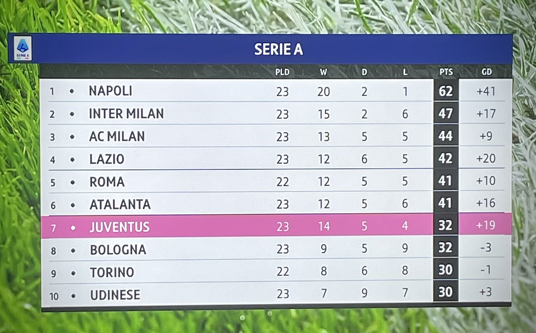 აღსანიშნავია, რომ ტურინული კლუბი ამ გამარჯვების შემდეგ მე-7 ადგილზე გადავიდა და ევროპულ ზონას კიდევ უფრო მიუახლოვდა.